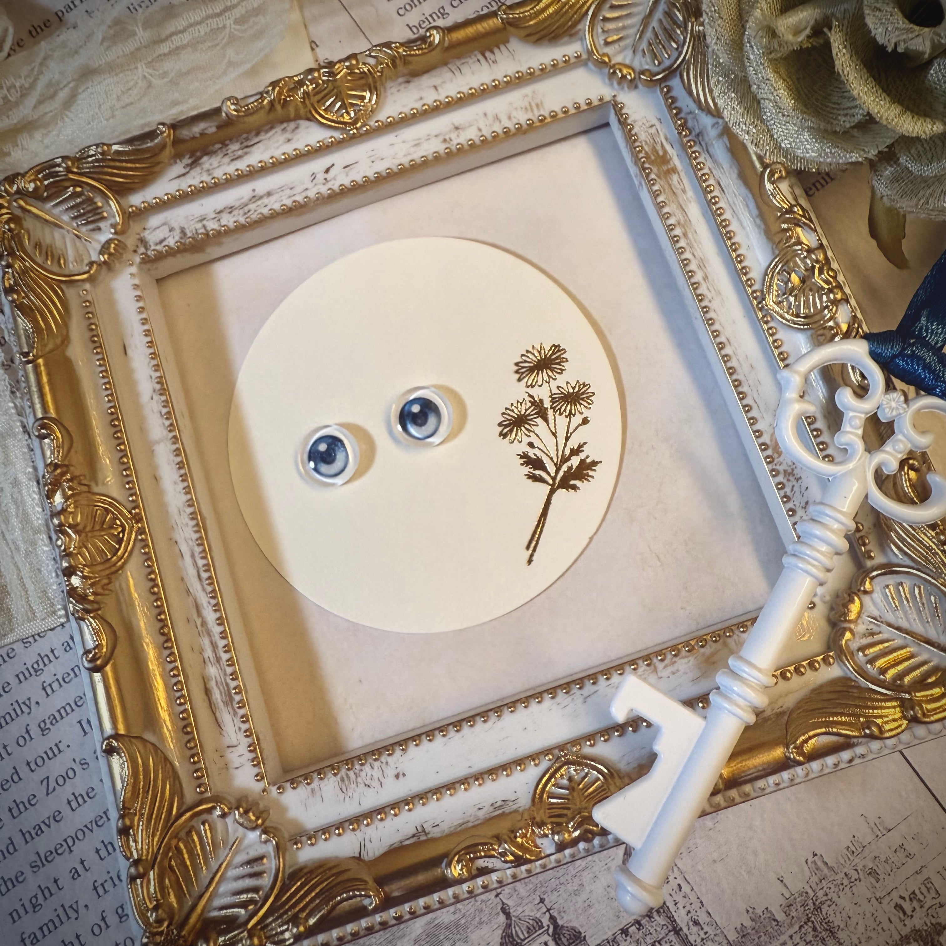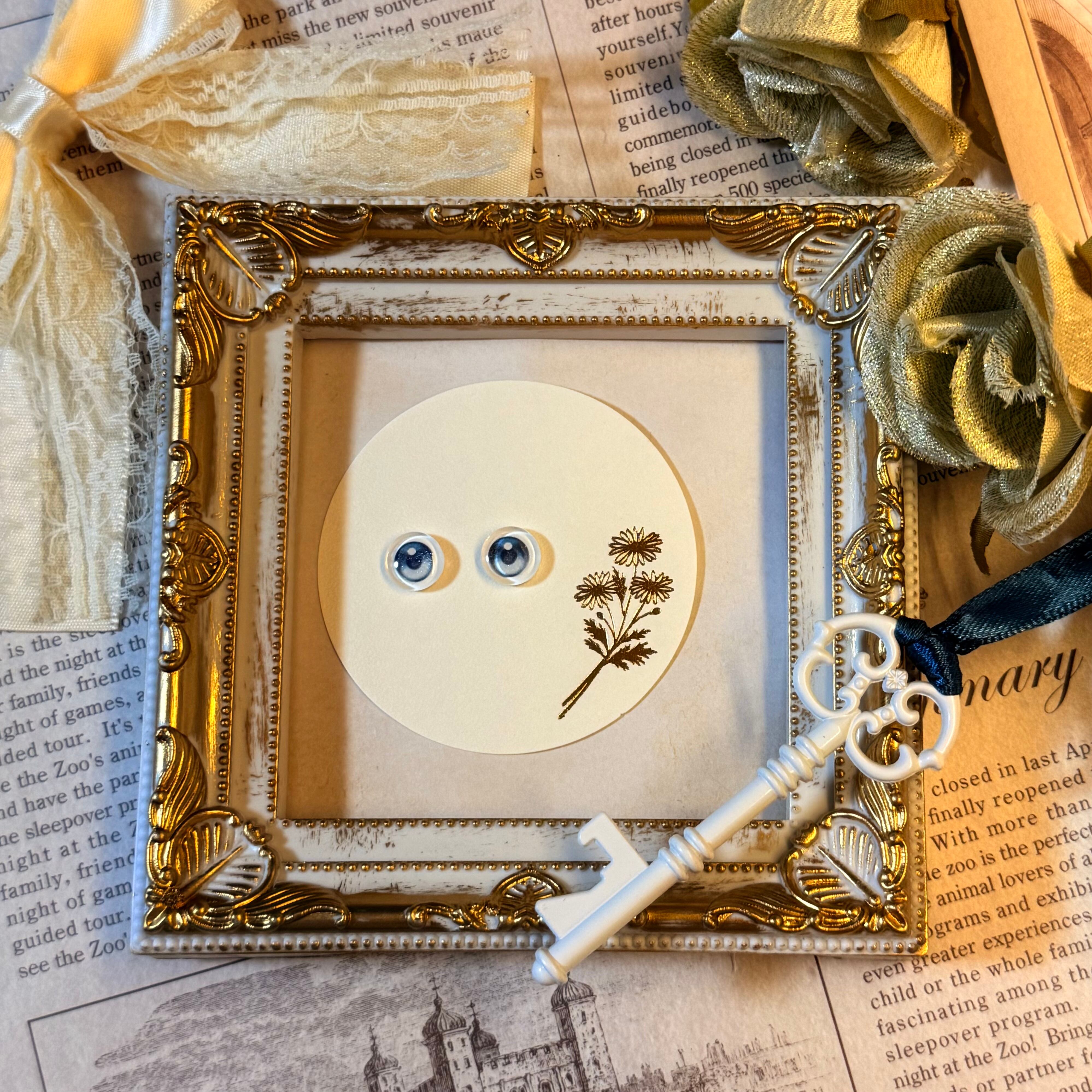 カボション、レジン、ラメ、紙等を使って制作したハンドメイド作品のため、若干のズレ、小さな気泡やほこり、わずかな傷が入ることがございます。